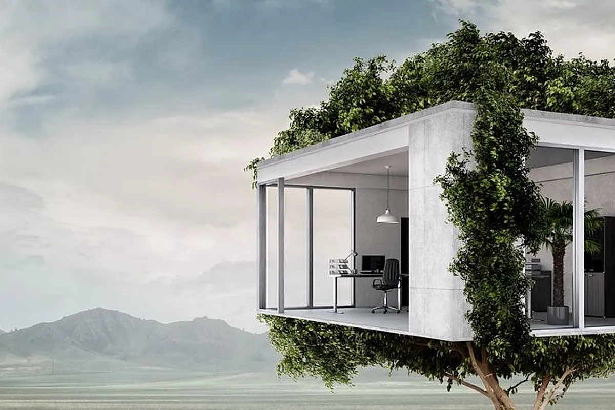 Real estate concept and ecology. Mixed media