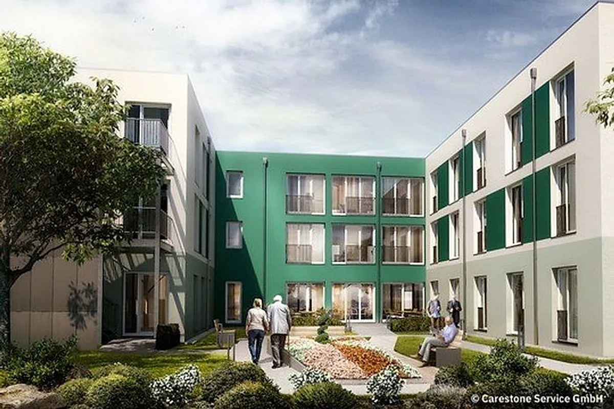 Carestone schafft auf einer Bruttogeschossfläche von rund 9.000 Quadratmetern durch die Kombination von zwei Gebäudebereichen ein modernes Betreuungskonzept. Der erste Gebäudeteil mit drei Vollgeschossen und Teilunterkellerung bietet Raum für 90 Pflegeplätze in attraktiven Einzelzimmern. Eine Vollküche wird die künftigen Bewohnerinnen und Bewohner mit frisch gekochten Speisen versorgen. Ein öffentlich zugängliches Café kann ein Treffpunkt für Bewohnerinnen, Bewohner, Besucherinnen, Besucher und die Nachbarschaft werden. Im zweiten Gebäudeteil entstehen, verteilt über drei Vollgeschosse und ein Staffelgeschoss, 47 betreute Wohnungen mit 49 bis 63 Quadratmetern Wohnfläche. Die Bewohnerinnen und Bewohner dieser Wohnungen können auf Wunsch durch die hauseigene Vollküche des Komplexes mit verpflegt werden und auf Serviceleistungen zurückgreifen, um die eigene Selbstständigkeit so lange wie möglich zu wahren.
